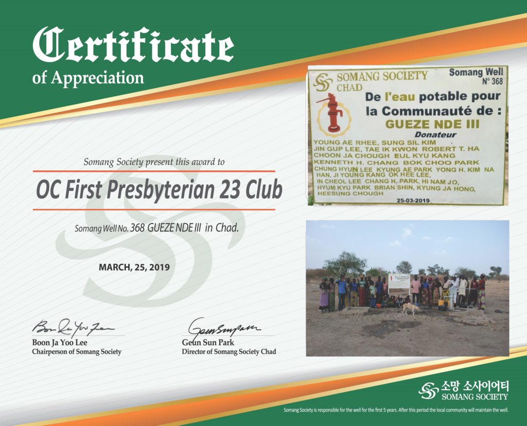 유난히 물이 부족한 아프리카 차드에 우물 1개를 만드는 비용은 3,500달러로 5년간의 관리 및 보수비용이 포함되어 있으며 약 4,000명의 인근 마을 주민들에게 깨끗한 식수를 공급함으로 그들의 목마름을 해결해 줄 뿐 아니라 8초마다 어린아이가 죽어가고 있는 아프리카의 생명을 살리고 삶의 소망을 주고 있습니다.